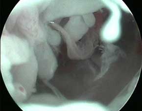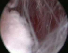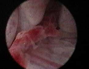 针刀镜技术针刀镜显示骨性关节炎患者关节腔内大量横络产生