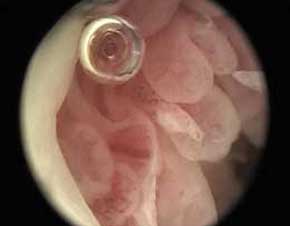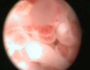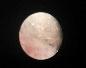 针刀镜技术内窥镜下,可见类风湿患者关节内大量血管翳和滑膜增生
